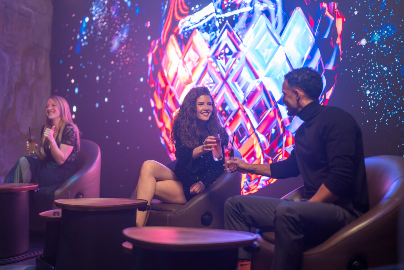 Signature absolue du concept, le Floating Chair – un système de transport breveté par MACK Rides – permet aux convives de circuler à travers différents univers sensoriels. Cette plateforme motorisée, composée de plus de 2 000 pièces et pesant environ 320 kg, évolue avec une fluidité remarquable selon une chorégraphie au sol parfaitement maîtrisée.